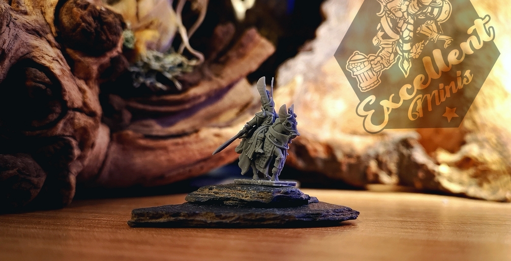 You get the stl-files for a Noble Elve Champions with Sword and Lance on Horse (intended for 10-15 mm wargaming)
